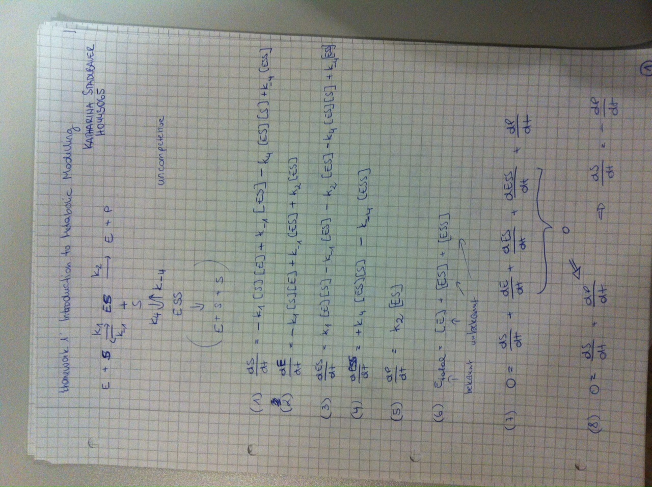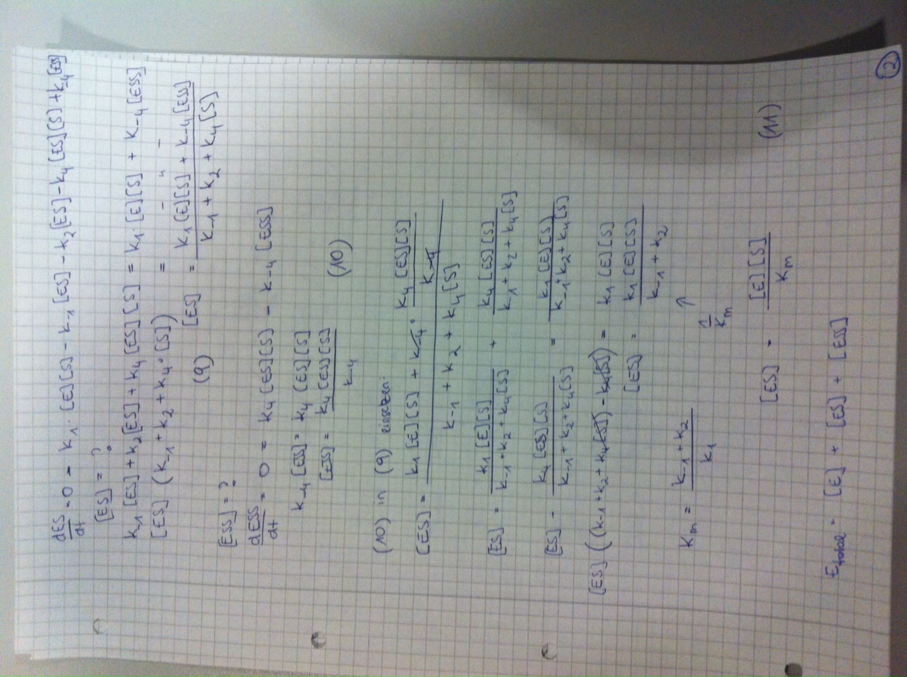 *) den (E) Ausdruck in den (ES) Ausdruck einsetzen und das ganze dann in dP/dt=k2(ES) einsetzen und vereinfachen nach v = vmax*????