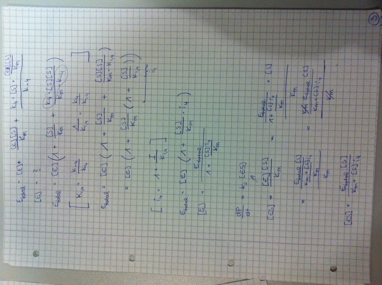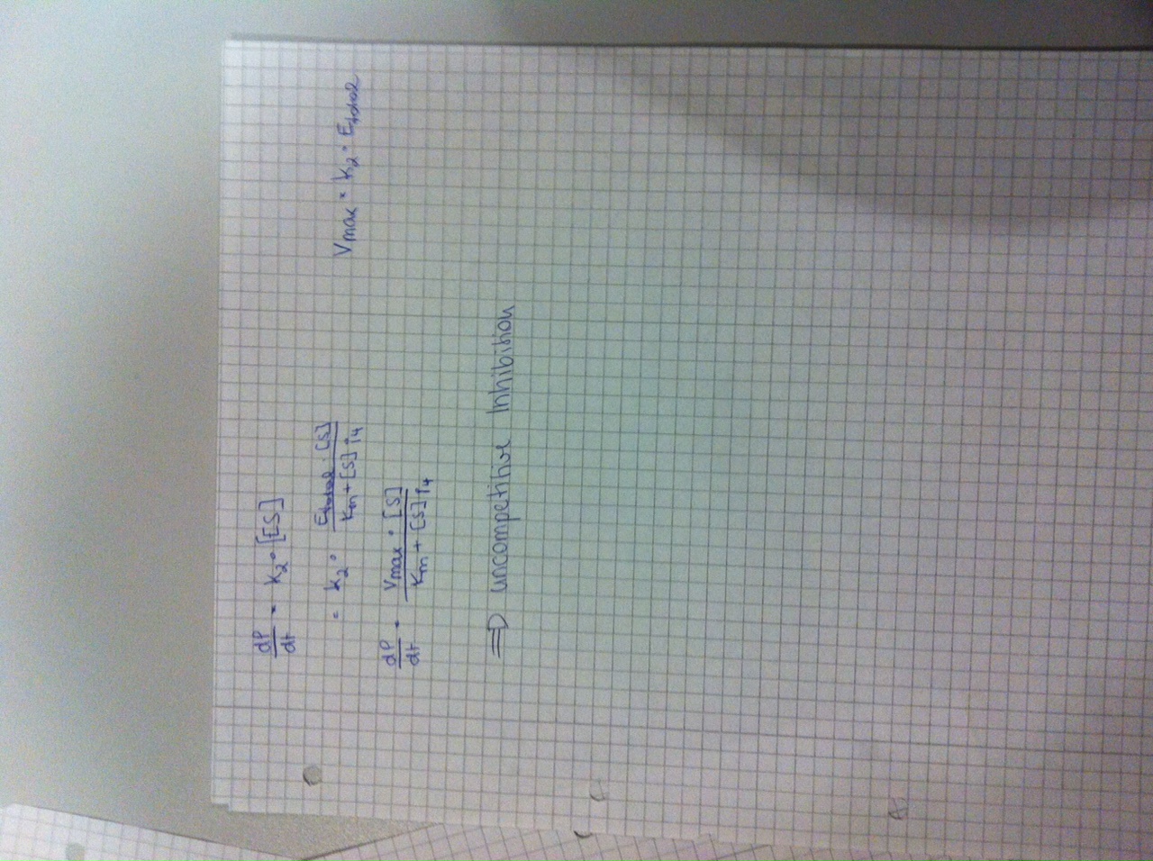 Dann kann man wieder Km ausdrücken, ebenso Ki und i4 und dann kommt man über dP/dt=k2 * ES auf die Formel für uncompetitive inhibition.