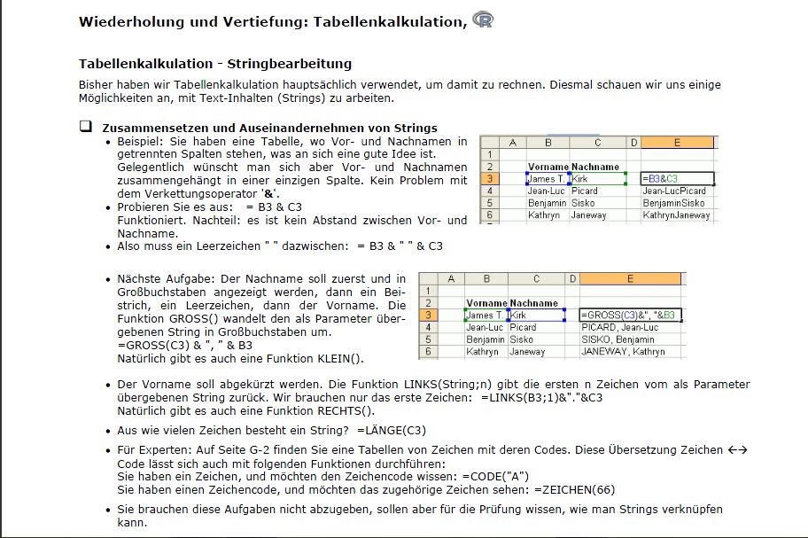 "Wie funktioniert das verknüpfen von Strings in Excel? (Funktion "Verketten", sollte in einer der ersten Übungen drinnen sein)"