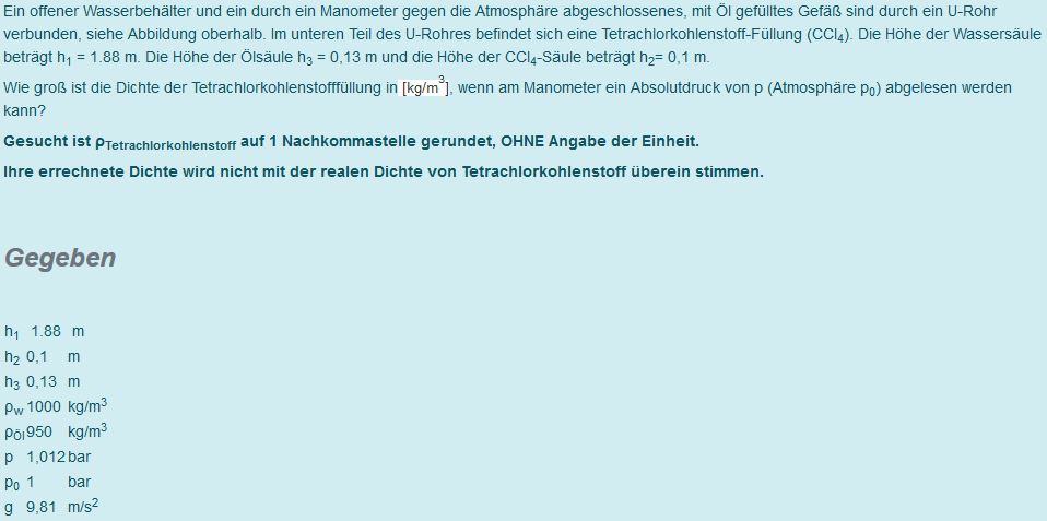 p'= p+ ρ(öl) gh(3) + ρ(CCL4) gh(2)