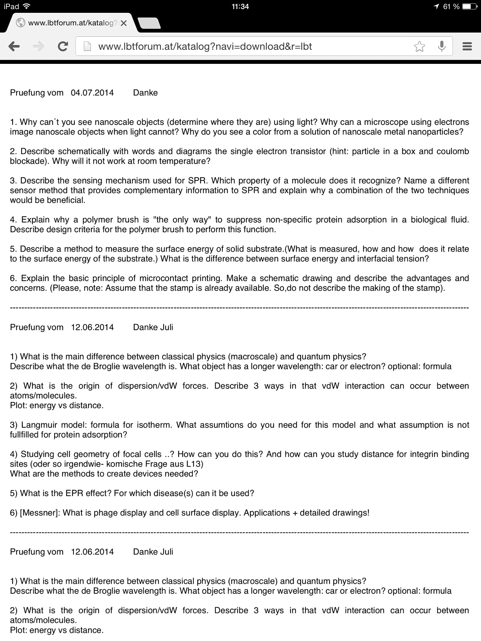 LBT - Lebensmittel und Biotechnologie • Thema anzeigen - Prüfungstermin Juli 2014