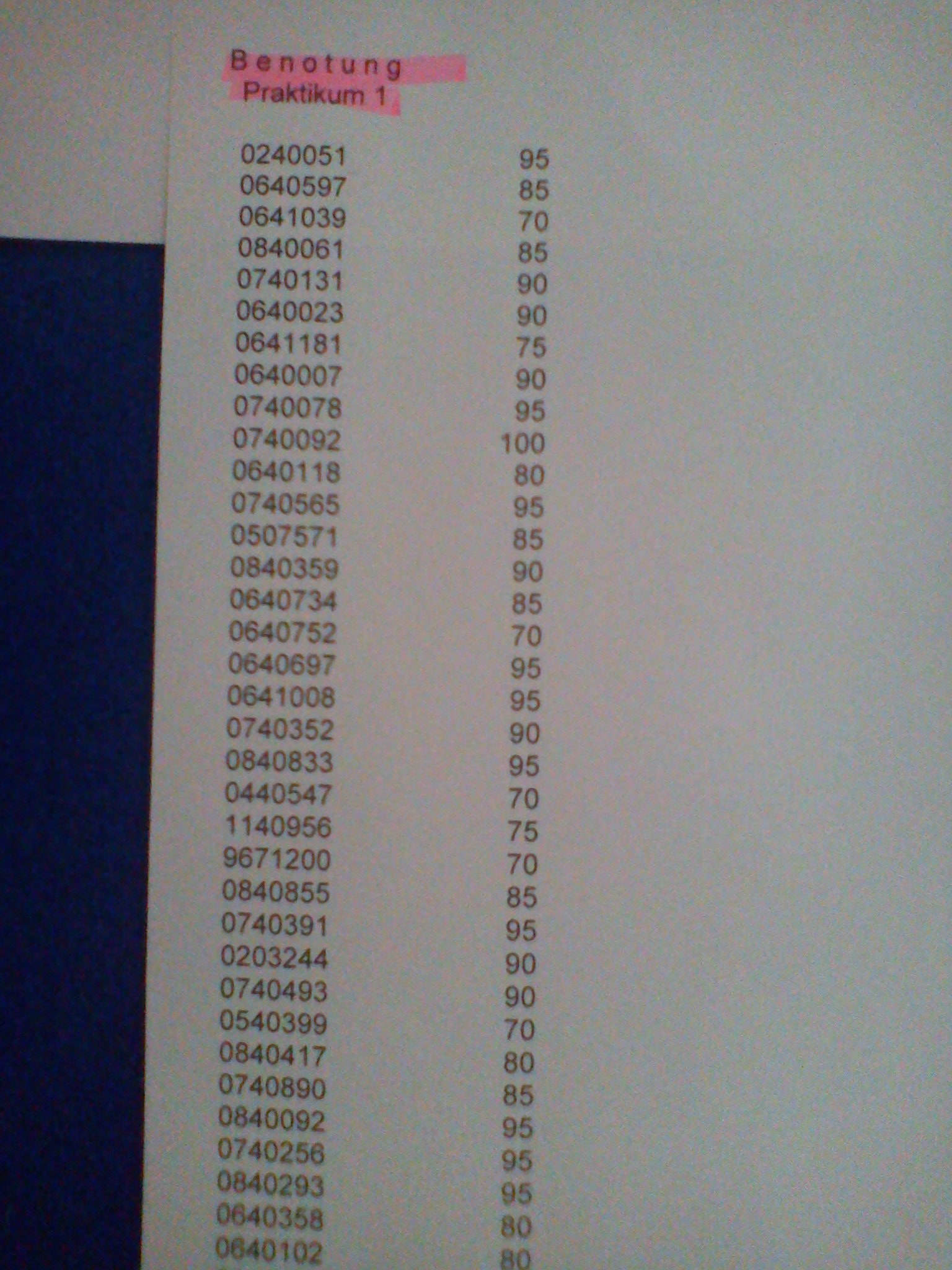 Die Benotung ist schn ausgehängt. Ich habs abfotografiert und stells am Abend online - hab jetzt kein Kabel da!