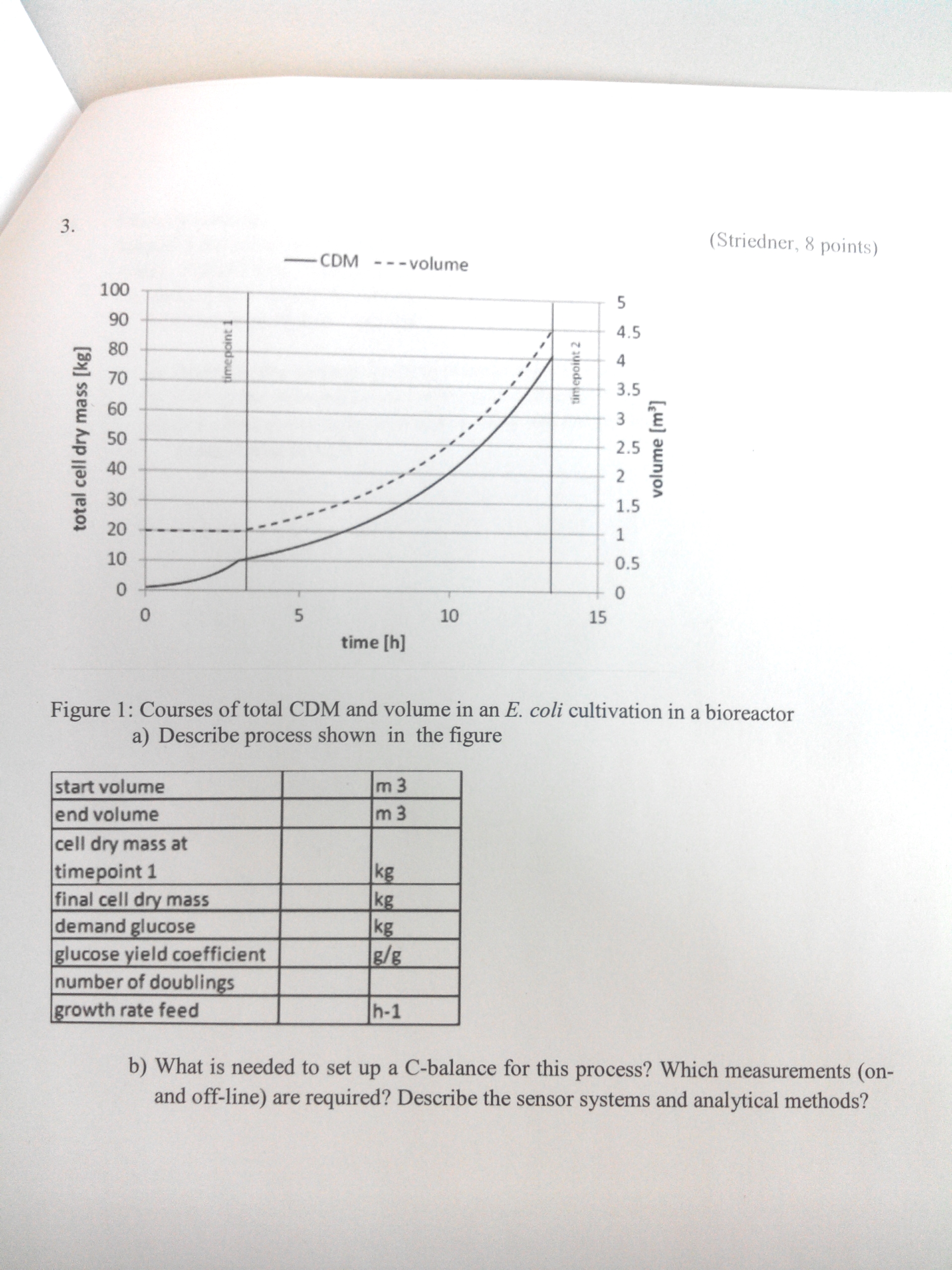 Ich hab die Fragen von Prof. Striedner abfotografiert, damit man sich besser vorstellen kann, wie die Grafik zum Batch/Fedbatch-Beispiel aussieht.